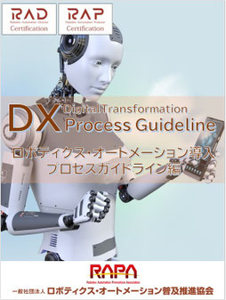 認定ロボティクス・オートメーションディレクター(RAD)の資格取得に関する学習は当協会標準テキスト「DXProcessGuideline-ロボティクス・オートメーション導入プロセスガイドライン編-」を利用致します。